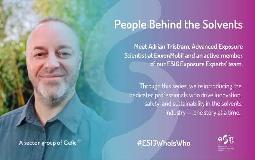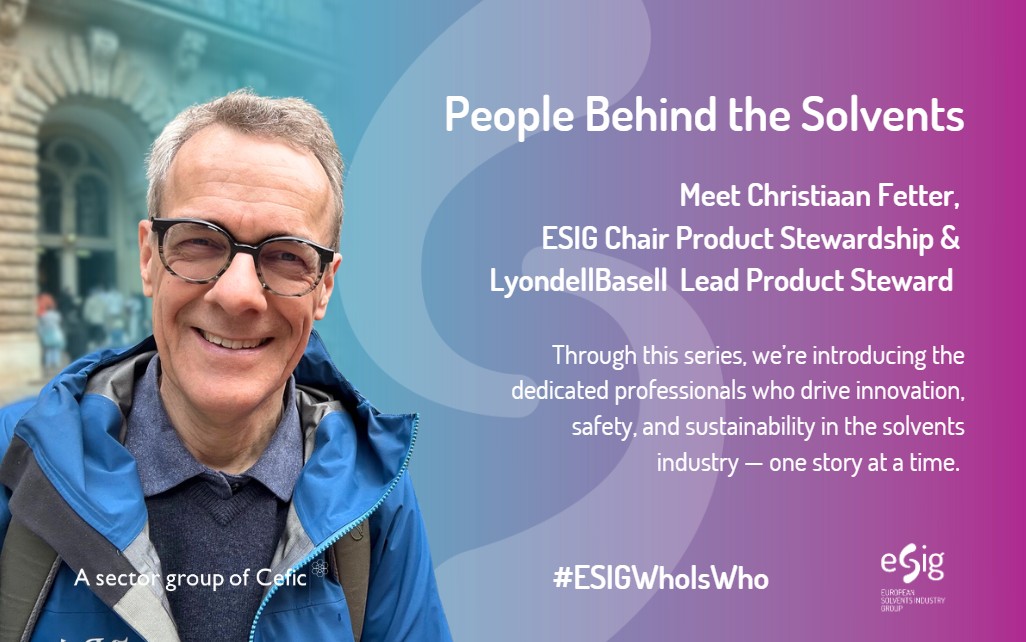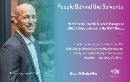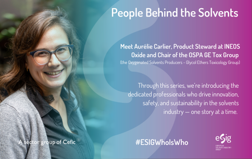 Meet the people shaping ESIG and our industry. Our strength lies in our people. Through our #PeopleBehindTheSolvents  series, we introduce the dedicated colleagues who make ESIG’s mission possible. Discover their stories on LinkedIn.
